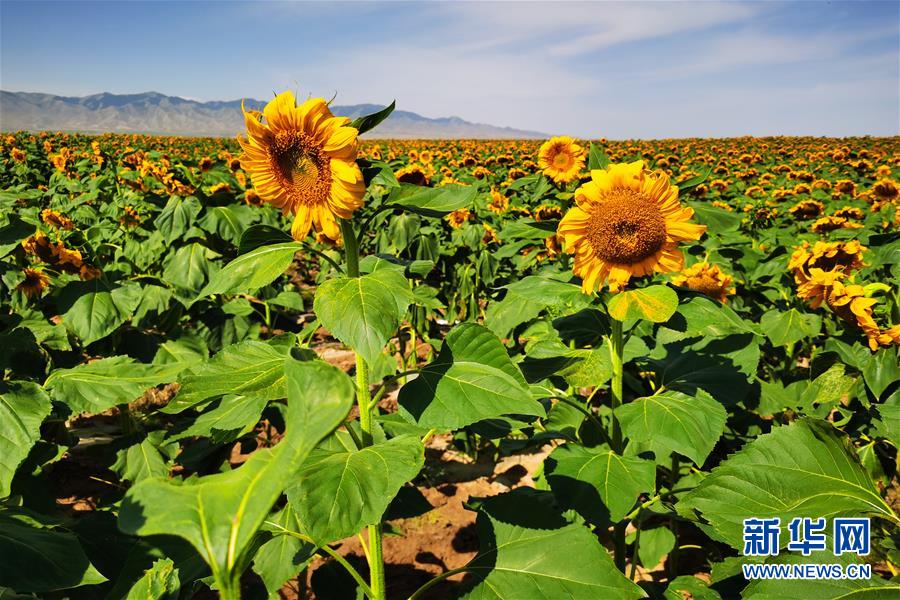 這是8月13日在景泰縣寺灘鄉拍攝的向日葵花海。初秋時節,位于甘肅省白銀市景泰縣寺灘鄉的十萬畝向日葵競相綻放,金黃的葵花張開“笑臉”,迎接豐收。據介紹,當地近年來按照“標準化生產、規模化經營、企業化管理、品牌化運作”的現代農業發展理念,依托集中連片、平坦開闊的旱砂地資源,在寺灘鄉建設食葵標準化生產基地,現種植面積已達十萬畝,初步形成集種植、加工、科技、觀光于一體的國家現代農業產業園。新華社記者范培珅攝