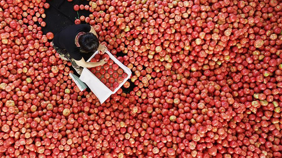 6月18日,在湖南省張家界市桑植縣,康華粽葉扶貧工廠的工人在搬運粽葉。