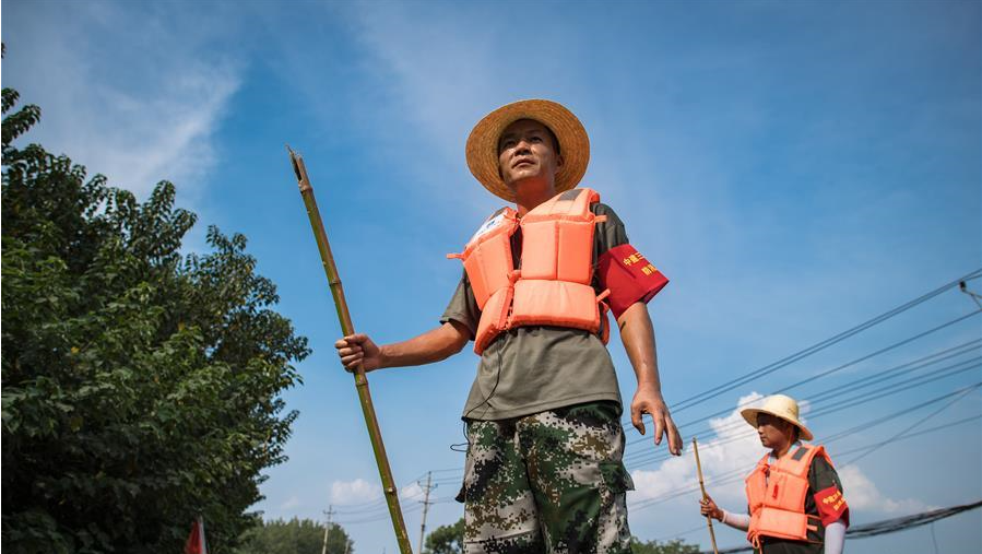 眼下,武漢迎來持續高溫天氣。火神山醫院建設者、中建三局二公司防汛搶險突擊隊員夏德勤已在長江武金堤的抗洪一線忙碌了近一個月。