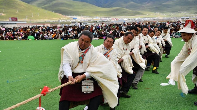 8月12日,2020中國碌曲鍋莊舞展演暨甘南藏族自治州第六屆少數民族傳統體育運動會在甘肅省甘南州碌曲縣夏澤灘草原上舉行。開幕式上,三千余名身著節日盛裝的演員和當地群眾在草原上起舞,雨后初晴的草原上充滿歡聲笑語。