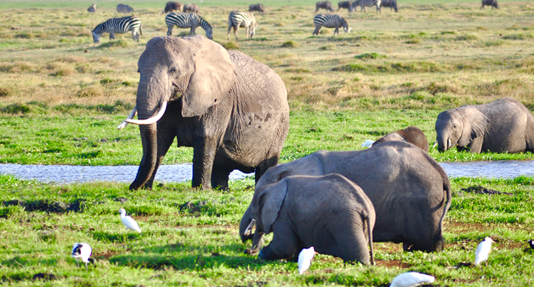 肯尼亞東南部,與坦桑尼亞接壤的安博賽利國家公園,距內羅畢240公里,因水草豐美而成為野生非洲大象的樂園。