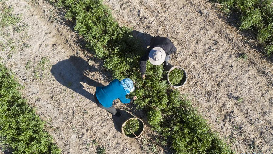 5月11日,寧夏百瑞源賀蘭山基地枸杞芽茶全面進入采摘季。