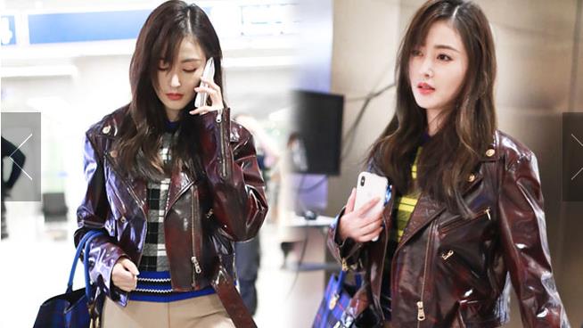張天愛漆皮夾克又潮又帥 低頭疾走打電話氣場十足