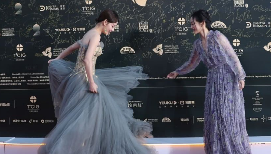 張嘉倪紗裙飛舞,何泓姍一個動作太尷尬