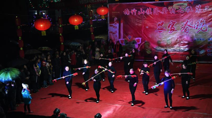 1月31日,隆興村七社村民在“農家春晚”上表演打蓮簫。 當日,重慶市南川區楠竹山鎮隆興村七社舉辦“農家春晚”。