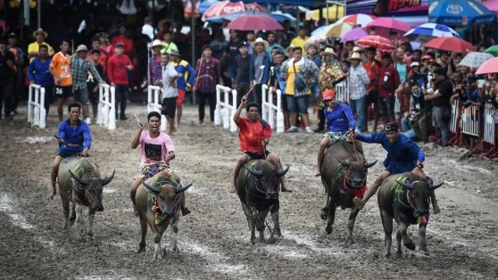泰國春武里舉行年度水牛賽跑
