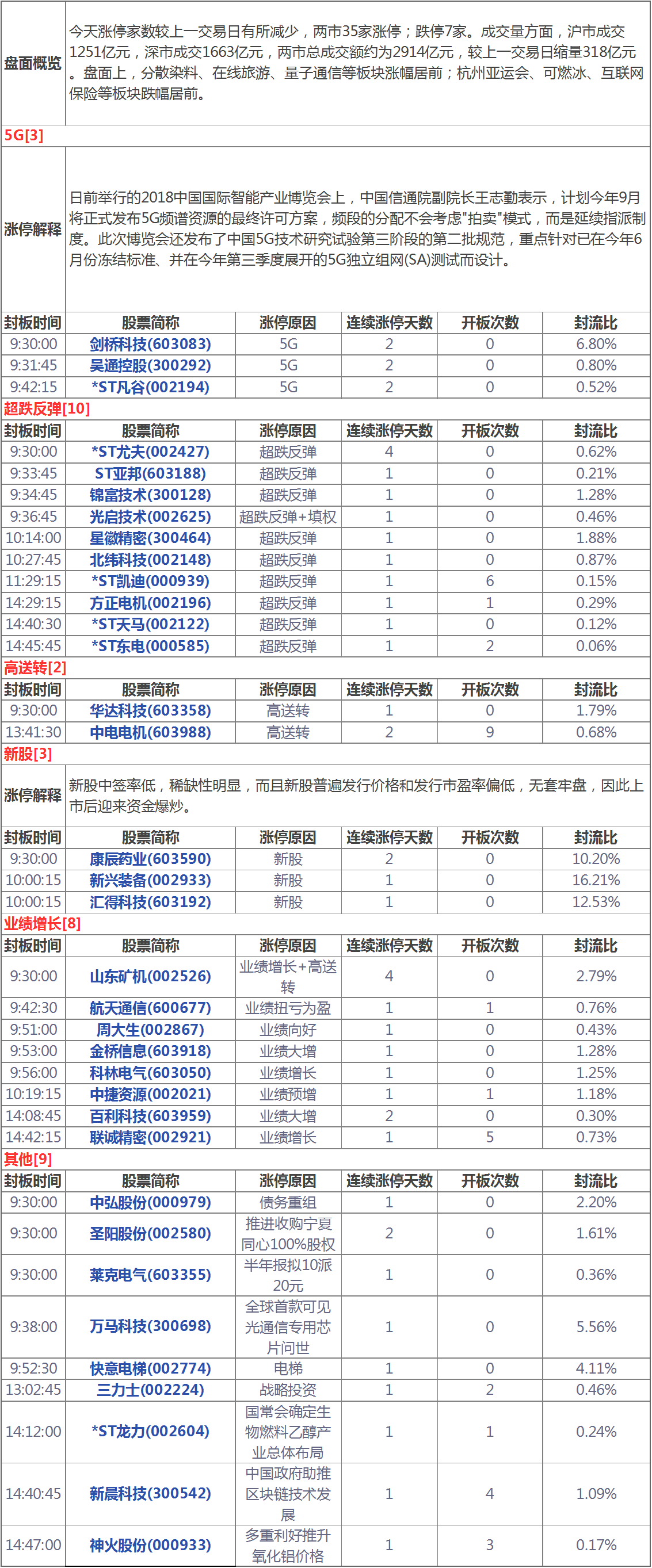 今天漲停家數(shù)較上一交易日有所減少,兩市35家漲停;跌停7家。成交量方面,滬市成交1251億元,深市成交1663億元,兩市總成交額約為2914億元,較上一交易日縮量318億元。