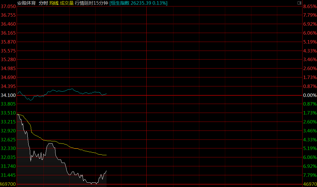 智通財經APP獲悉,安踏體育(02020)盤中跌至31.2港元,創年內新低,截至10時50分,跌8.5%,報價31.2港元,成交額2.28億。