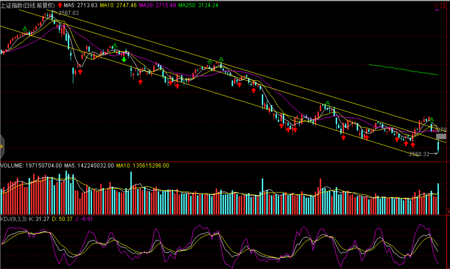 周四兩市股指大幅跳空低開震蕩走低,各大股指均創(chuàng)出2年半以來單日最大跌幅。上證綜指收跌5.22%報(bào)2583.46點(diǎn),深證成指跌6.07%報(bào)7524.09點(diǎn),創(chuàng)業(yè)板指跌6.3%報(bào)1261.88點(diǎn)。兩市放量成交3586.21億元,環(huán)比大幅增加1225億元,創(chuàng)近兩個(gè)月新高。盤面看僅有西藏、天然氣及人民幣貶值板塊有所上漲外全盤皆綠,市場普跌,超過1000家公司跌停。