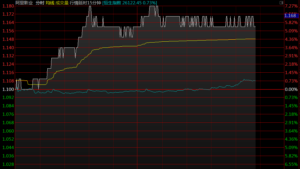 港股異動︱阿里影業(01060)漲6.36%本周四公布中期業績