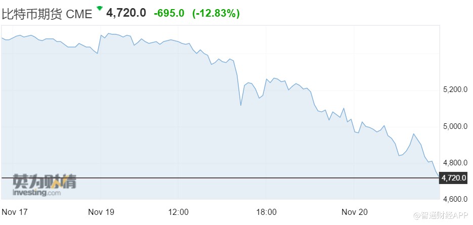 智通財經APP獲悉,因悲觀情緒持續存在,比特幣在幣值跌破6000美元長達一周之后,昨日又暴跌12.83%,跌破5000美元關口,報4720美元。過去7天,比特幣跌超22%;今年以來累跌60%以上;與歷史高點相比累跌70%以上。