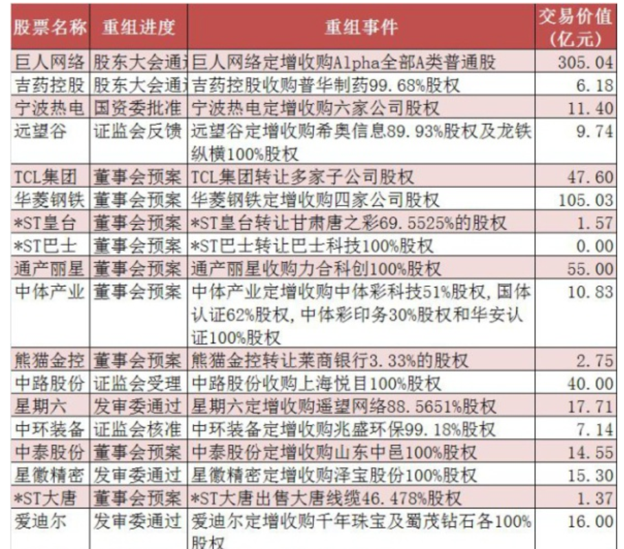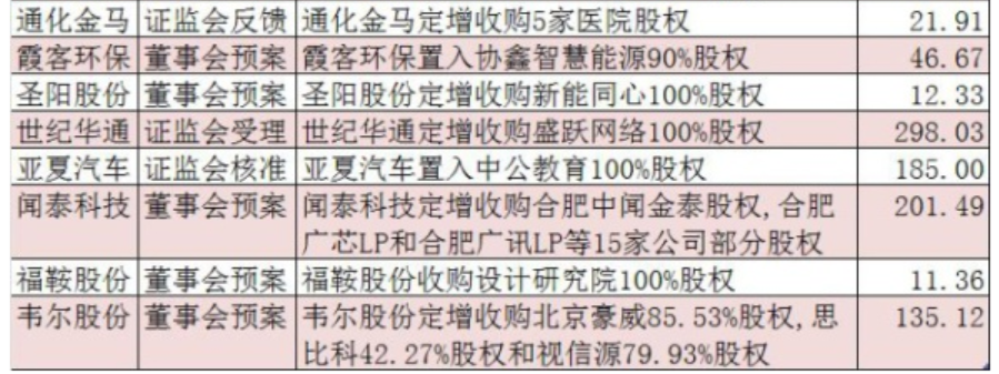 并購重組經歷近二年的低谷后,政策由緊到松,目前快速回暖,概念股逐步走強,近日又有多家公司公布并購方案;