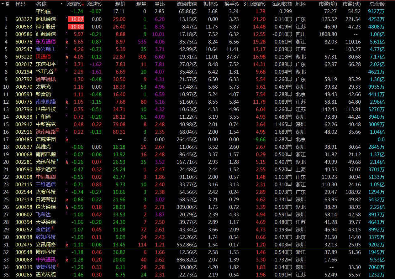 超乎尋常的頑強,早盤競價除東方通信(600776)與超訊通信(603322),板塊近乎全軍盡歿,但開盤后泰永長征(002927)、東方通信(600776)快速上拉,超訊通信(603322)封死一字板,給了市場短線資金信心,抄底盤開始進場,板塊開始迅速上攻。從今天早盤的表現看,5G板塊資金介入程度頗深,后續應重點關注。