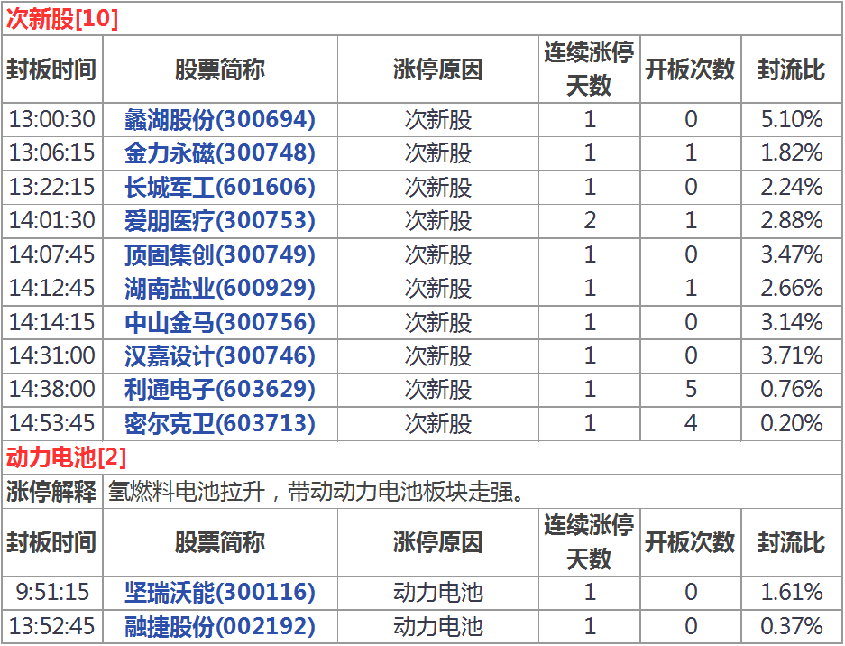漲停分析:氫燃料電池走強次新股多股漲停(1月11日)