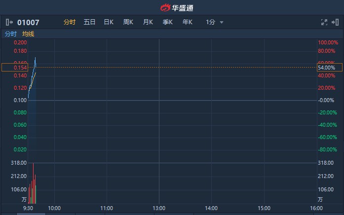 智通財(cái)經(jīng)APP獲悉,龍輝國際控股(01007)早盤受資金追捧,快速拉升,一度漲70%,截至9時(shí)38分,漲54%,報(bào)0.154港元,成交額達(dá)2218萬港元。