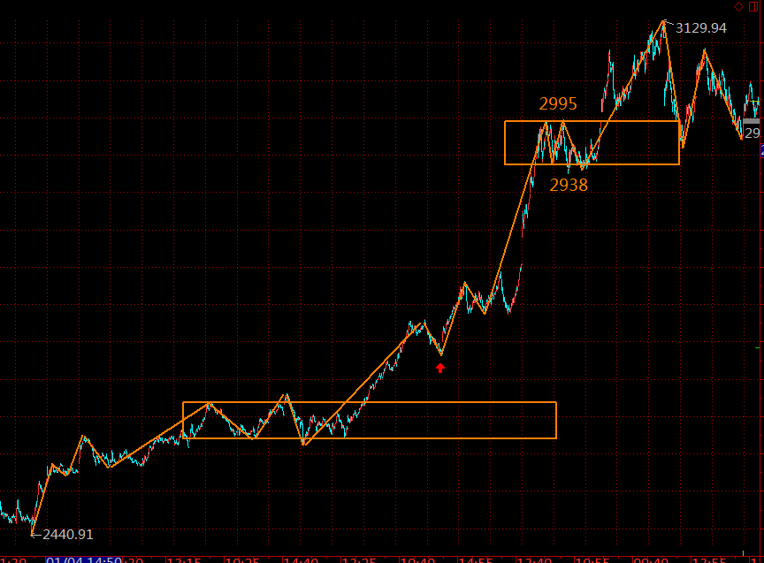 滬指最終選擇了在這個位置進行級別擴張,這里正式進入30分鐘級別的盤整走勢,那么2938點顯得非常關鍵,跌破該位置后,反抽若不能重新站上去,將繼續往下擴大調整空間。