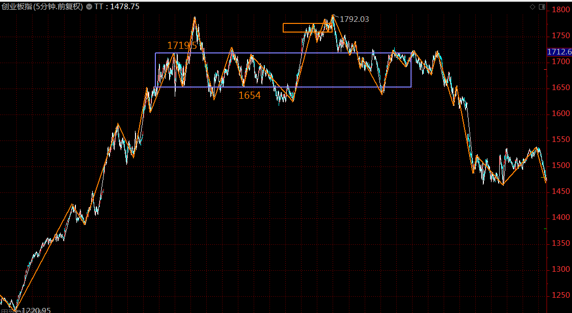 同級(jí)別分解后,創(chuàng)業(yè)板指數(shù)這里也進(jìn)入了4月8日開始的五分鐘級(jí)別下跌趨勢(shì)最后一段,周一再次探底后,可全面轉(zhuǎn)入進(jìn)攻模式。