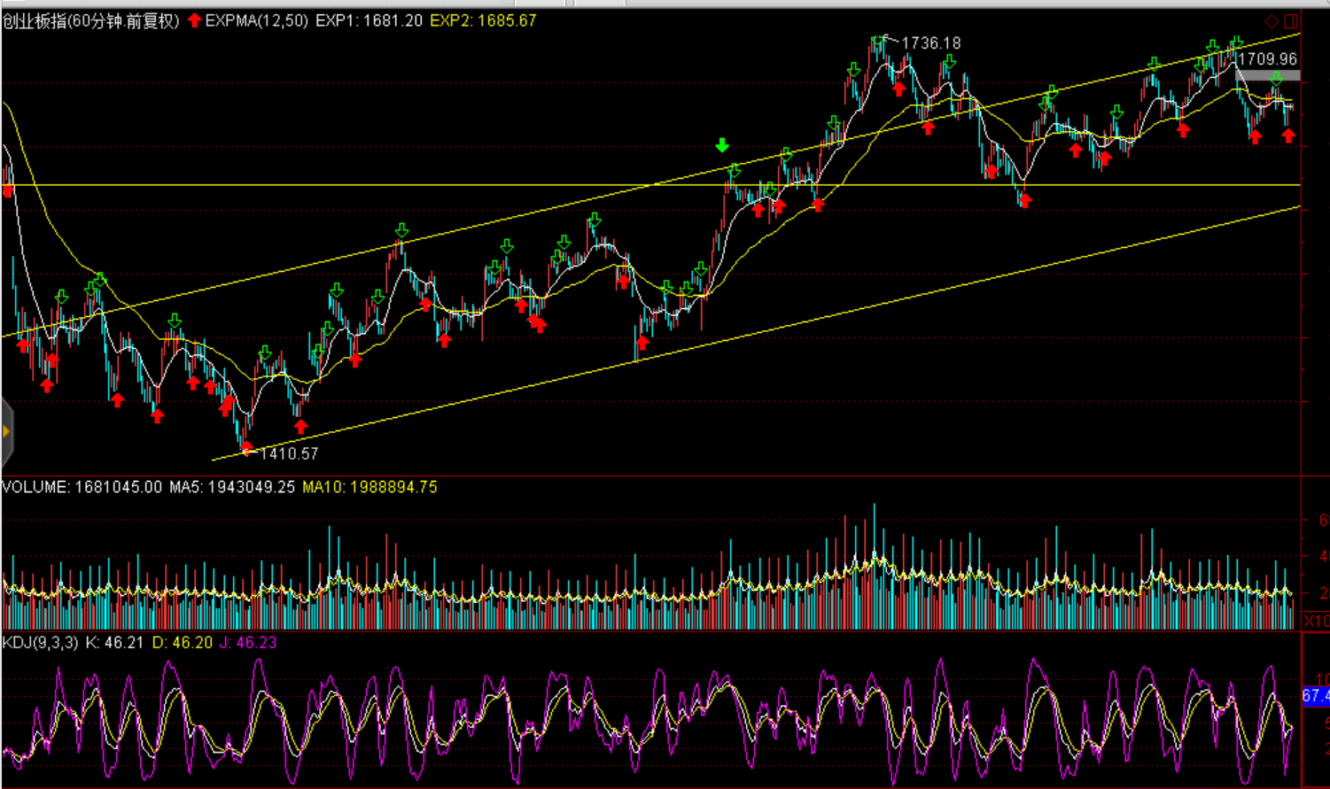 技術面:60分鐘KDJ低位金叉后,短期股指止跌反彈,小周期反彈挑戰9月16日以來收斂三角形下軌(滬綜指2935---2950點);創業板1700點一線存在一定壓力。
