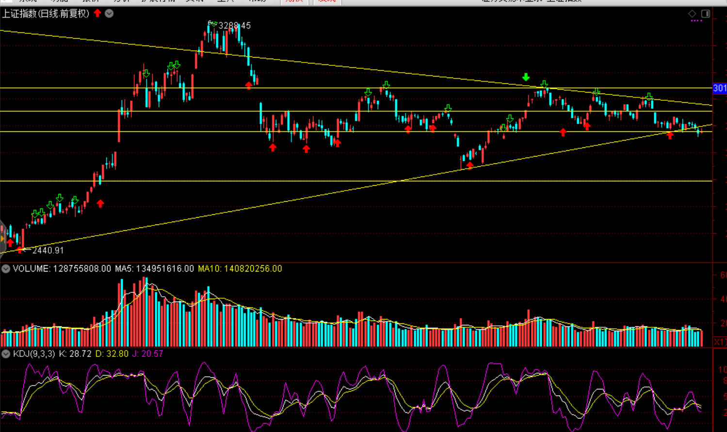 技術(shù)面:短期縮量企穩(wěn),滬指處于年線與半年線區(qū)間運(yùn)行;預(yù)計(jì)今日探底回升,小幅反彈。