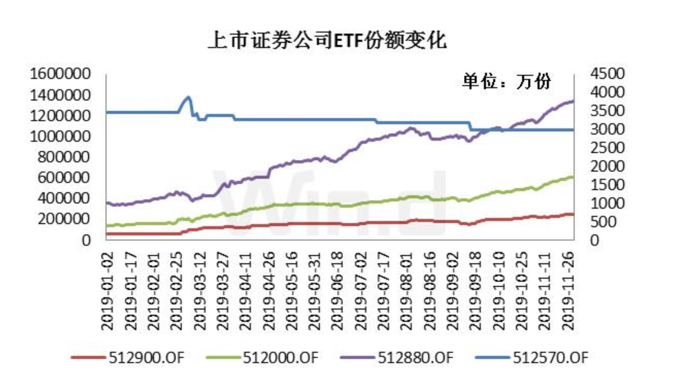 三季度以來,資金持續(xù)流入證券公司ETF,國(guó)泰中證全指證券公司ETF、華寶中證全指證券ETF和南方中證全指證券公司ETF的份額也未停止增長(zhǎng)。