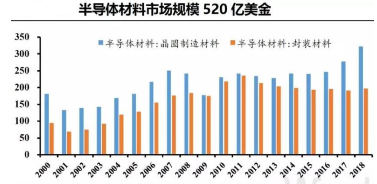 中國(guó)大陸和中國(guó)臺(tái)灣為全球半導(dǎo)體材料主要市場(chǎng),未來(lái)需求將持續(xù)增加。至2018年,中國(guó)臺(tái)灣和中國(guó)大陸半導(dǎo)體材料市場(chǎng)分別為790億元和582億元,在全球占比分別為22.0%和16.3%,合計(jì)共38.3%。未來(lái)隨著晶圓廠投產(chǎn)量持續(xù)增加,市場(chǎng)規(guī)模將進(jìn)一步擴(kuò)大。