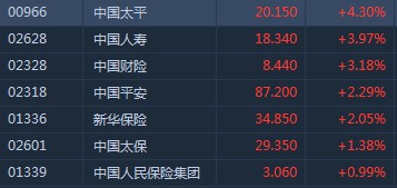 高盛指內險股估值吸引,吁“買入”中國平安(02318)及中國財險(02328)。內險股全線走高。