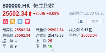 恒生指數開盤漲0.09%,報25502.34點。國企指數漲0.33%,報10024.18點。紅籌指數漲0.42%,報4103.17點。大市盤前成交9.17億港元。隔夜美股尾盤反彈,道指盤中最多跌超600點,尾盤突現反轉,收漲逾1%。