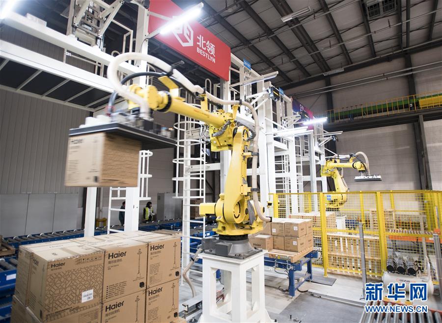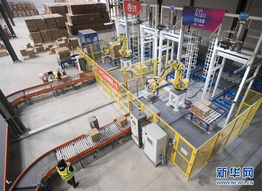 近日,在菜鳥網絡武漢黃陂物流倉內,一組機械臂在進行搬運作業。近日,菜鳥網絡在湖北武漢黃陂物流倉庫啟用智能機械臂來搬運商品。