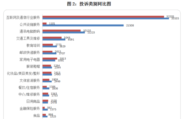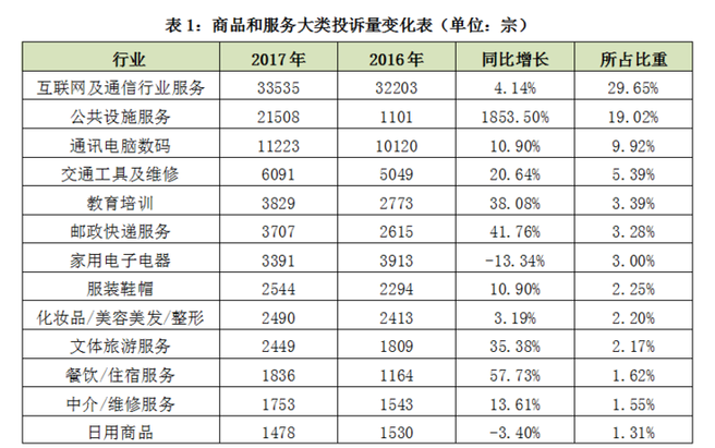 互聯(lián)網(wǎng)及通信行業(yè)服務(wù)、公共設(shè)施服務(wù)、通訊電腦數(shù)碼投訴量位居前三,成為消費(fèi)者最鬧心的三大消費(fèi)領(lǐng)域。