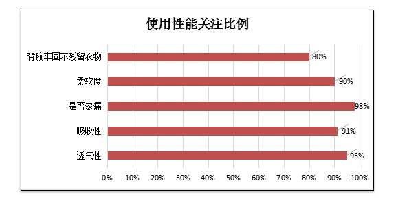 依據前期消費者調查顯示,女性消費者除了擔心衛生巾產品的安全問題,還會關注其吸附量及表面的干爽程度等使用感受,即衛生巾標準要求的滲入量及吸水倍率指標。