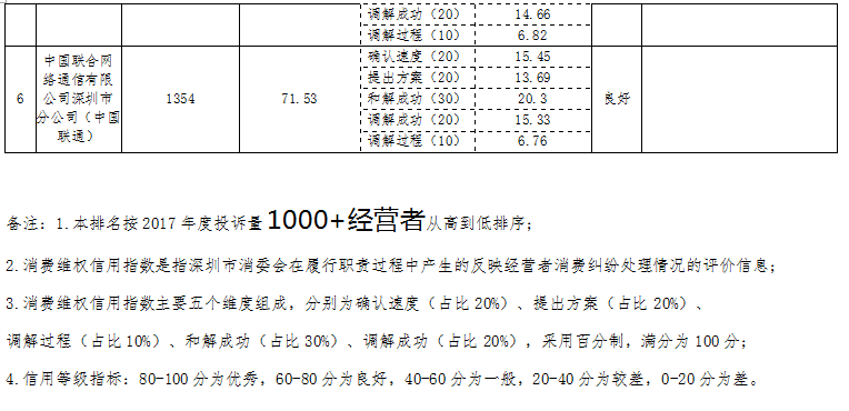 同期,深圳市消委會也首次同步發布上述經營者的消費維權信用指數。