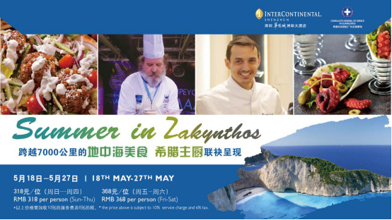 5月18日至27日 ,深圳華僑城洲際大酒店全日制餐廳廣場咖啡廳帶來魅力浪漫的希臘舌尖體驗。