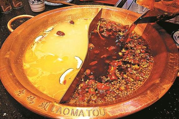 這次“開鍋”的其中一個主角是曾在2015火鍋文化節獲頒“成都十大最紅火鍋”殊榮的成都老碼頭火鍋。老碼頭標榜為“無渣”火鍋,現切牛油絕不二次利用,湯底由香料藥材混合牛油熬制而成,除了辣椒外基本不見其他渣滓。油碟采用蘸裝,佐料豐富,食客可以根據自己的喜好調制。