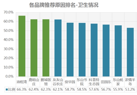 衛生情況推薦率排名前三依次為:油柑灣、鹿咀山莊、鵬城飯館;