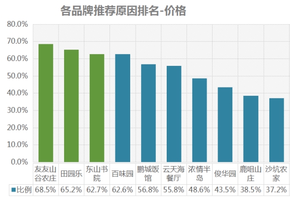 價格推薦率排名前三依次為:友友山谷農莊、田園樂、東山書院;