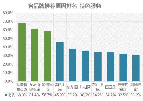 特色服務推薦率排名前三依次為:科普特生態園、友友山谷農莊、濃情半島;