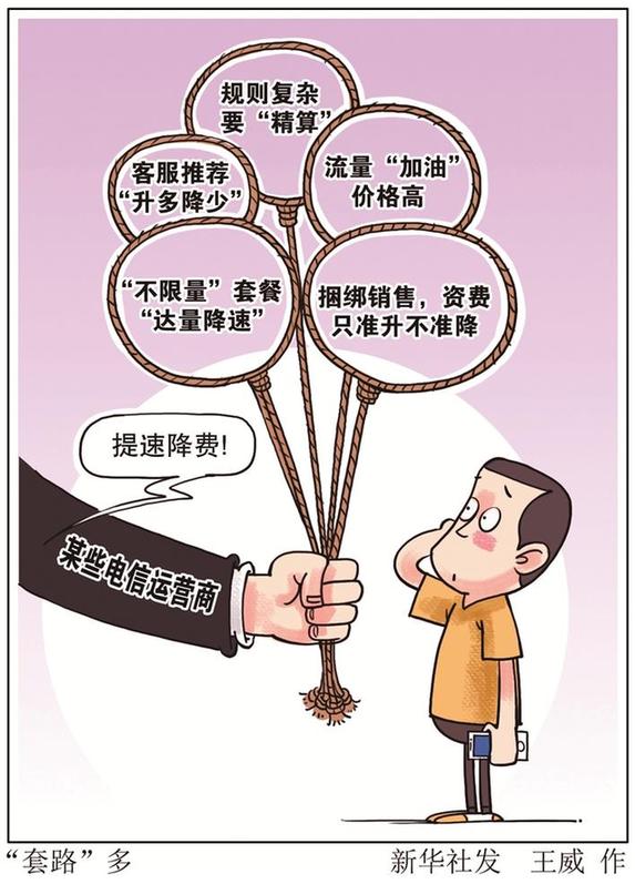 套路五:捆綁銷售,資費(fèi)只準(zhǔn)升不準(zhǔn)降。許多消費(fèi)者在辦理手機(jī)套餐時,運(yùn)營商會贈送寬帶服務(wù),二者資費(fèi)不能單獨(dú)改動。深圳王女士去年辦理了某運(yùn)營商的“136元贈送寬帶”的電信套餐,但套餐內(nèi)流量只有1GB,且不能更換成其他流量資費(fèi)優(yōu)惠的套餐;如果超流量就必須支付30元1GB的“流量包”。王女士每月實際通訊費(fèi)超過170元。