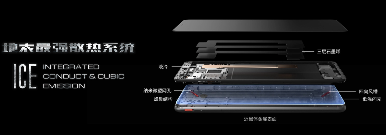 不難看出,努比亞在紅魔Mars上使用了一套相當創新的散熱系統。但它的基本思想其實相當“單純”:真正的游戲手機不僅要有足夠高的性能,還必須要在長時間的游戲過程中保持這樣的高性能。這,其實正是此前紅魔初代就提出過的電競手機必備品質。