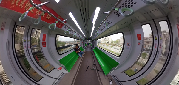比亞迪云軌可廣泛用于一二線城市的交通接駁線、加密線,三四線城市的交通主干線,以及旅游景區的觀光線等場景。結合云軌視頻回傳等重點業務場景,云軌車內安裝了360球機攝像頭,通過5G網絡傳輸實時回傳拍攝到的全景視頻畫面。遠程操控人員借助VR眼鏡及大屏幕觀看云軌高清視頻畫面,以第一視角控制和監測云軌運行狀況,能在第一時間發現異常,迅速做出反應,預防交通危險。