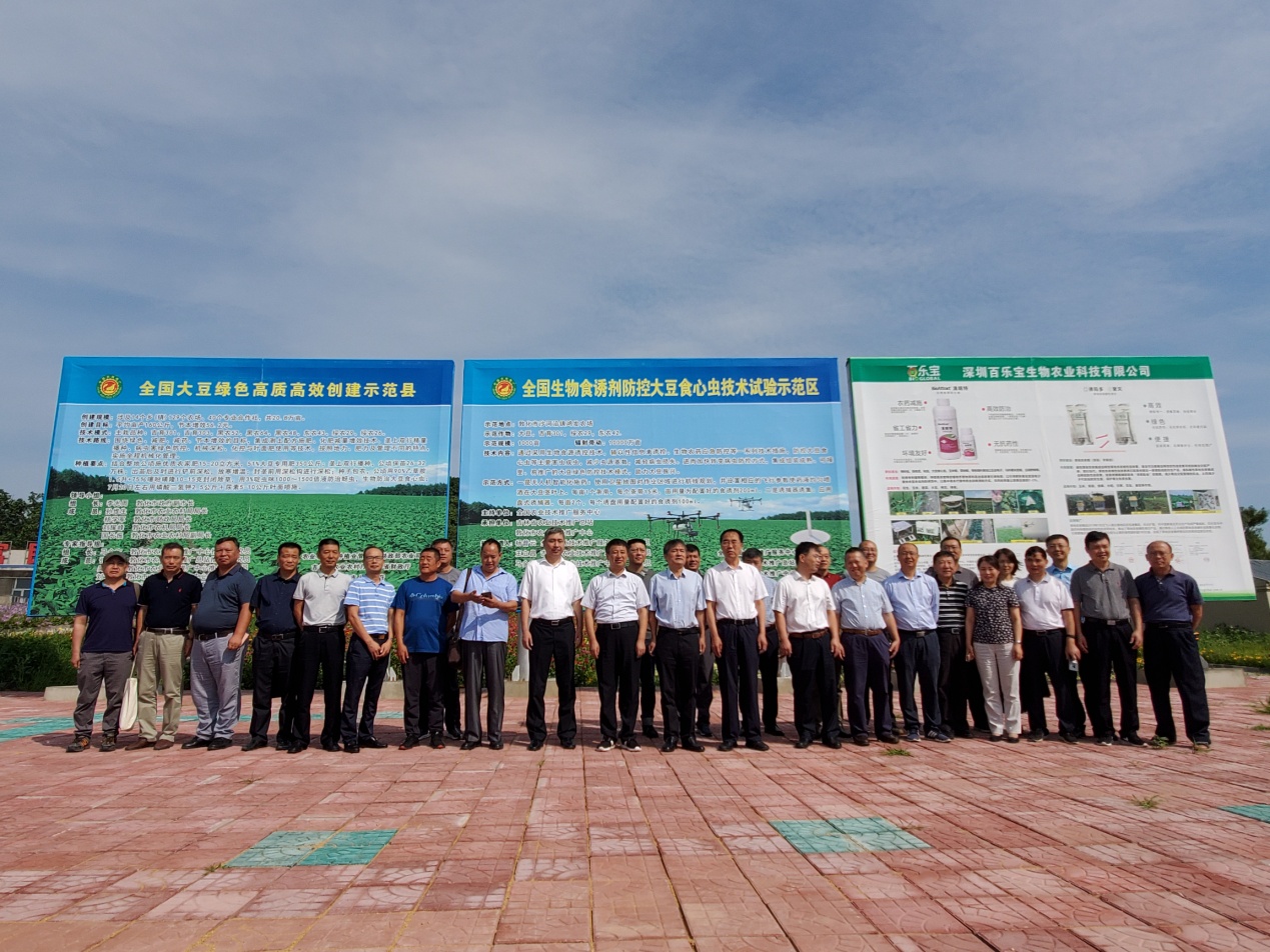 開班儀式前,參會領導、專家及各省市參會代表現場觀摩位于敦化市鴻發現代生態農場的全國生物食誘劑防控大豆食心蟲技術試驗示范區,在示范區現場觀摩無人機噴灑生物食誘劑。