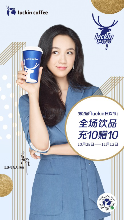 本次2019年雙11第2屆luckin狂歡節,長達16天的“充10贈10”的超大力度優惠,同時疊加周邊產品88折、“瑞幸X優酷特惠套餐”等多重活動。不但優惠力度堪稱最大,同時,包括湯唯、肖戰和馮唐等各種明星名人IP聯名潮流周邊產品的參與打call,也讓這屆luckin狂歡節異彩紛呈,堪稱國內咖啡連鎖行業內最受矚目,也是飲品行業力度最大的雙11促銷。