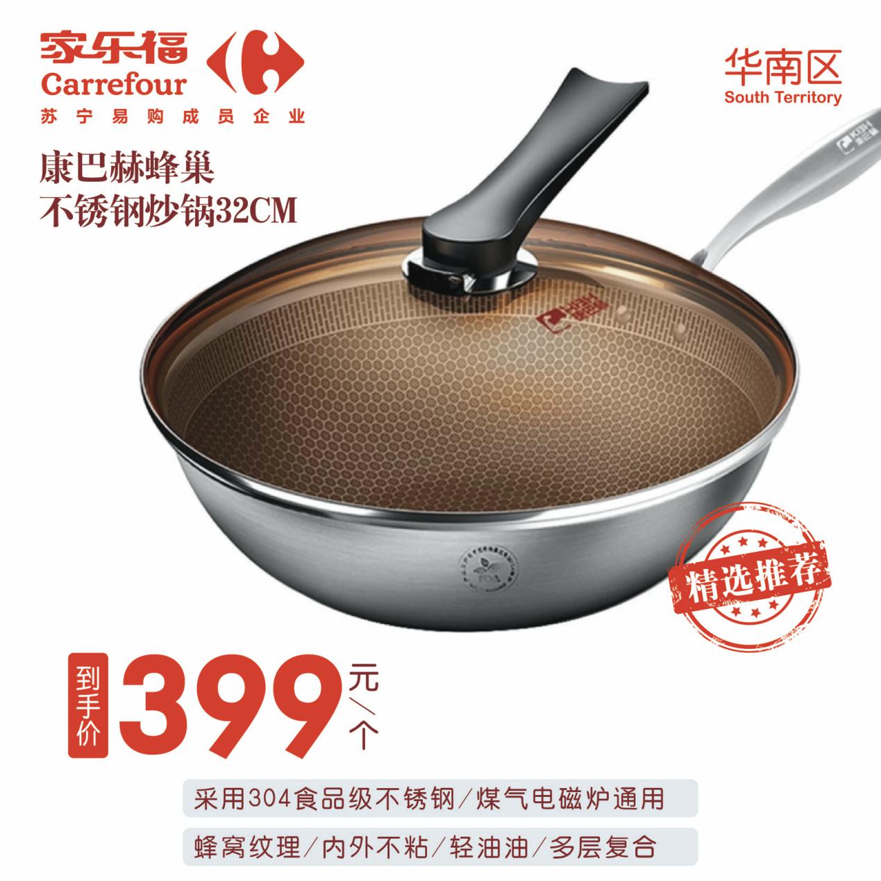網紅爆款康巴赫蜂巢304炒鍋,相信不少人心儀很久了吧?就現在,家樂福到手價399元/個。采用304食品級不銹鋼材質,多層復合,煤氣、電磁爐通用。蜂窩紋理,內外不粘,省油省心省事。各位廚神,趕緊把帥“鍋”帶回家,炒出幸福的味道!