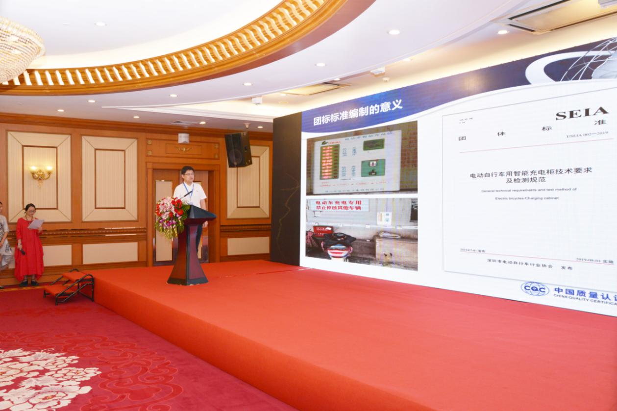 會議現場正式發布《電動自行車乘員頭盔技術要求及檢測規范》、《電動自行車用智能充電柜技術要求及檢測規范》和《電動自行車用鋰離子蓄電池技術要求及檢測規范》等三項團體標準,并舉行了“深圳市電動自行車行業安全標準先行示范啟動儀式”。中國質量認證中心總部郝鑫瑞、中國質量認證中心深圳分中心陳昱、深圳市計量質量檢測研究院楊東平分別對三項標準作了展示和解讀。