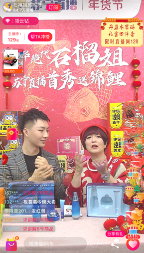 2020年伊始,“風華絕代”的石榴姐苑瓊丹在蘇寧易購開始了新年帶貨直播首秀,為全網用戶推薦實用年貨,超過100萬人“圍觀”了直播,兩小時帶貨超10萬件,平均每分鐘售出800件年貨,其中最受消費者歡迎的來伊份潮吉多堅果禮盒59秒售罄,創下2020年明星帶貨的新記錄!