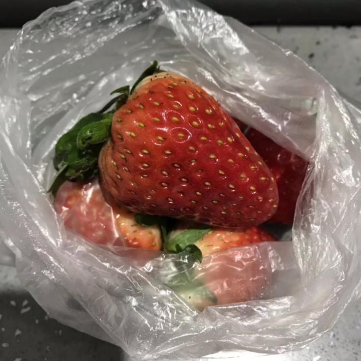 這些天,讓林濤印象最深刻的,是有一天一位老奶奶,也是他的老顧客,用保鮮袋裝了好幾個又大又紅的草莓,戴著口罩特地來到店里送給林濤。“據(jù)說那個草莓特別貴,她自己可能也不舍得吃。”林濤當時忍不住拍了照片保存下來:“就那種時候,你會感覺,留下來,值了!”