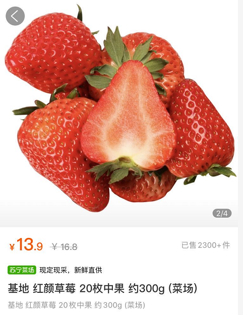 作為萬畝田的合作伙伴,蘇寧比任何人都清楚農戶的困境。為了幫助農戶解決銷路問題,蘇寧菜場主動向萬畝田采購江寧紅顏草莓,“目前光是南京一個城市,每天就可以售出2000斤左右。”