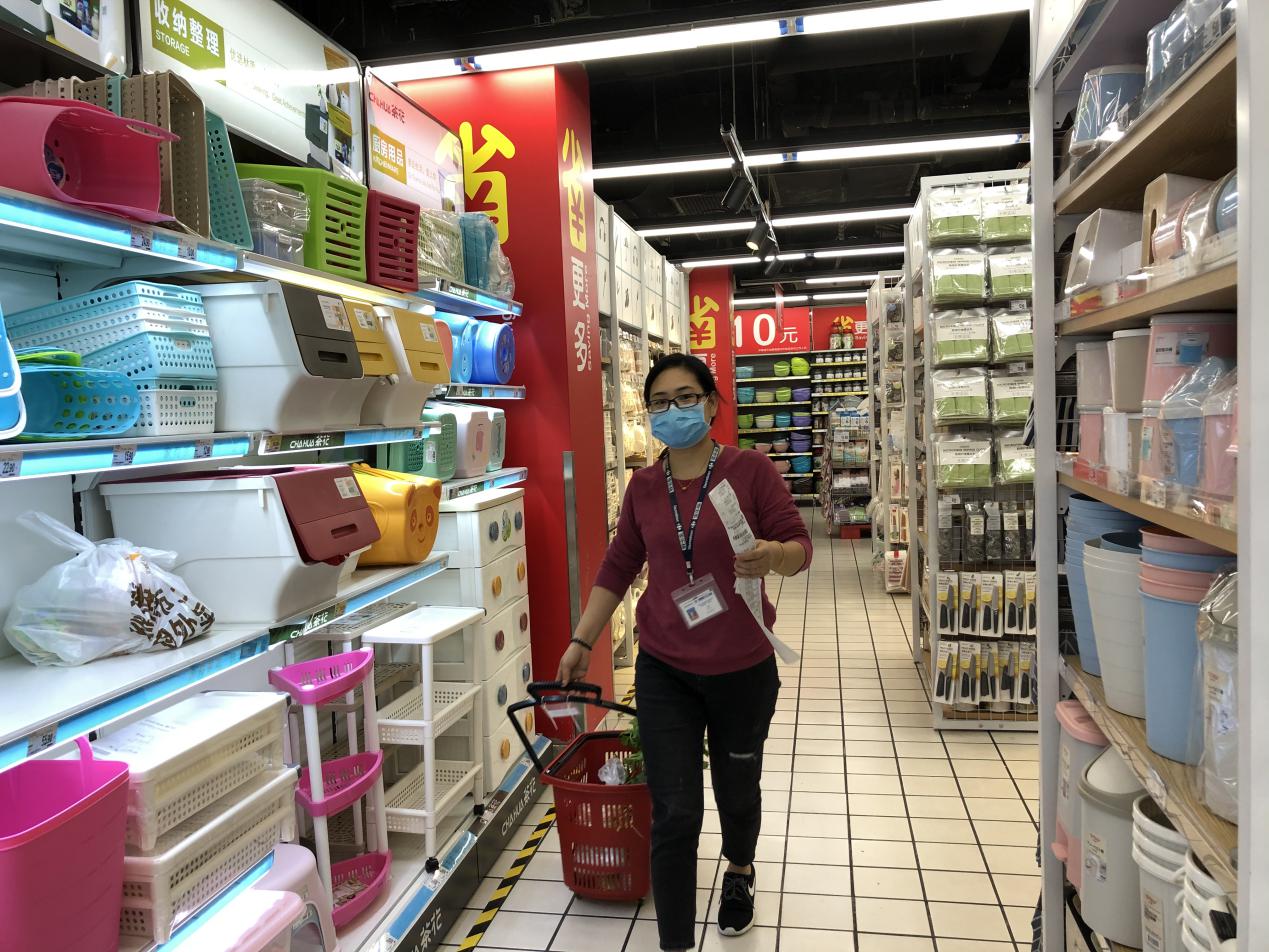 “現(xiàn)在手上這個(gè)單有24個(gè)商品需要揀貨,這還不算大單,我們有接到過(guò)一單上百個(gè)商品的,還有總價(jià)超過(guò)3000元的訂單呢。家樂(lè)福梅林店的賣場(chǎng)面積大概是5000平方米,每天上下2層樓跑多少趟具體倒是沒(méi)有統(tǒng)計(jì)過(guò),但像現(xiàn)在特殊時(shí)期,我們一天在網(wǎng)上接到的‘配送到家’服務(wù)訂單基本都要超過(guò)800單,有時(shí)候會(huì)到1000單。”