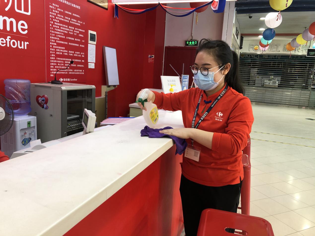陳翠姣這次被分配到了超市收銀部門,由于是標準化操作,加上使用移動支付的顧客較多,技術難度不大,在資深員工的耐心指導下,她上手很快。陳翠姣表示對新崗位很滿意,她說,賦閑在家太久了,這次能換崗上任,很開心,“尤其是能夠加入到保障城市民生供應的大型商超,非常有意義。”下午3點,陳翠姣為服務中心柜臺做第三次消毒清潔后,便可以結束今日的早班工作,打卡下班了。