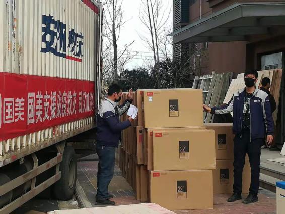 2月13日下午,國美還有援建武漢市九醫(yī)院東院A區(qū)方艙醫(yī)院的任務(wù),捐助200臺(tái)電視并完成配送。為了保證盡快完成如此大需求量的配貨,國美緊急調(diào)配了包括國美、TCL及海爾品牌電視,從武漢倉庫直接配送到方艙醫(yī)院,并按計(jì)劃于14日安裝調(diào)試。