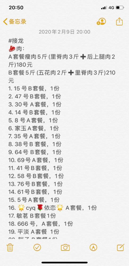 “為了讓買肉的過程更加有效,我們聯(lián)系供應商,將肉分為套餐,比如3斤里脊肉和2斤五花肉是A套餐,3斤里脊肉和2斤后腿肉就是B套餐”,胡玉玲說到。套餐一分,供應商也好根據(jù)套餐將肉分成份,方便居民購買。每次拿到貨的胡玉玲,都會選幾袋肉出來,用秤核實一下,以免社區(qū)的居民買到少了秤頭的肉,產(chǎn)生不必要的麻煩。她也會在大家拿到肉之后做調(diào)研,在群里詢問大家對每天買到的肉是否滿意,“從開始送肉到現(xiàn)在十多天了,還沒有收到過差評”,胡玉玲開心地說。